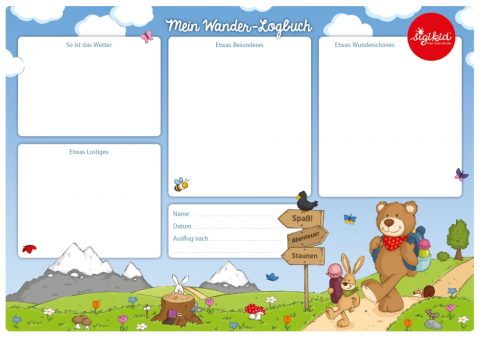 Hier kannst du deinem Kind unser Wander-Logbuch ausdrucken. Während des Ausflugs kann dein Kind dann in die freien Felder malen, wie das Wetter am Ausflugstag ist und was es an besonderen, wunderschönen und lustigen Sachen entdeckt hat. Dafür am besten ein paar Stifte und vielleicht ein dünnes Buch als Unterlage zum Malen mit in den Rucksack packen.