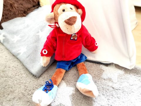 Die Entscheidung für eins der beiden Tiere fiel uns wirklich schwer, denn beide sehen wirklich sehr knuffig aus. Letztendlich haben wir uns für das Äffchen entschieden. Und unsere Wahl wurde auch sofort vom Apfelbäckchen begrüßt.