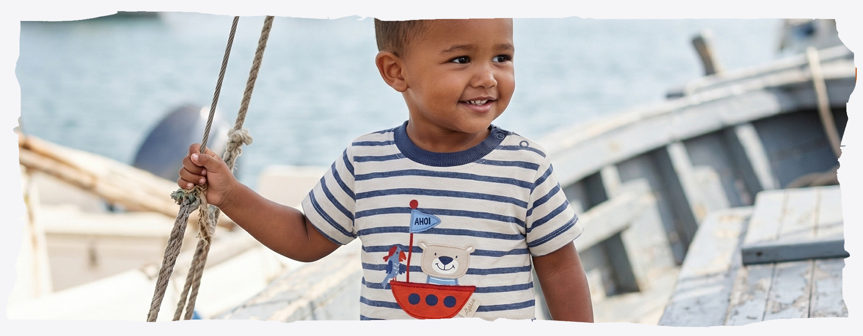 Das niedliche Baby T-Shirt mit Segelboot macht einfach Ferienlaune. Und selbst wenn noch keine Ferien sind: auch ein Besuch in der Eisdiele mit dem kleinen Spatz ist ein schöner Mini-Urlaubsmoment! Danach muss das T-Shirt wahrscheinlich in die Wäsche, aber das übersteht es prima und ist bald wieder im Einsatz.
